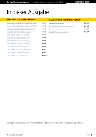 Stempel & Informationen – das Informationsblatt der Deutschen Post PHILATELIE AUSGABE 18–2024