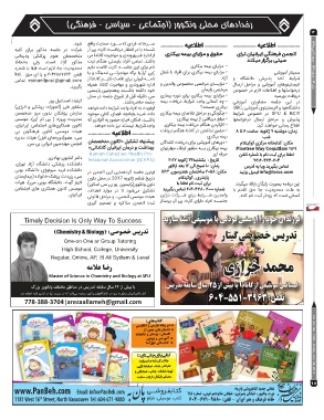 778-388-3704|arezaallameh@gmail.com ۶٠۴-۵۵1-٣٩۶٣ :نفلت