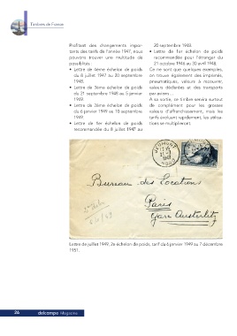 Lettre de juillet 1949, 2e échelon de poids, tarif du 6 janvier 1949 au 7 décembre