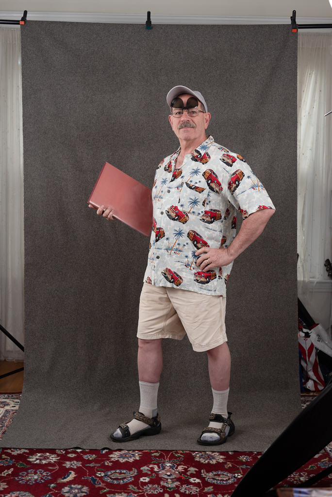 My livingroom doubles as my studio. It can be cramped and a bit "challenging" to rearrange furniture to open an area for lights, background and subject.
