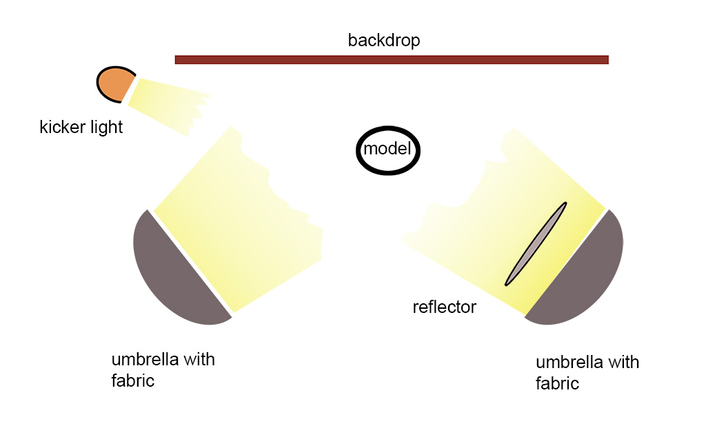 Here the studio photo is reduced to a diagram of the lighting setup: